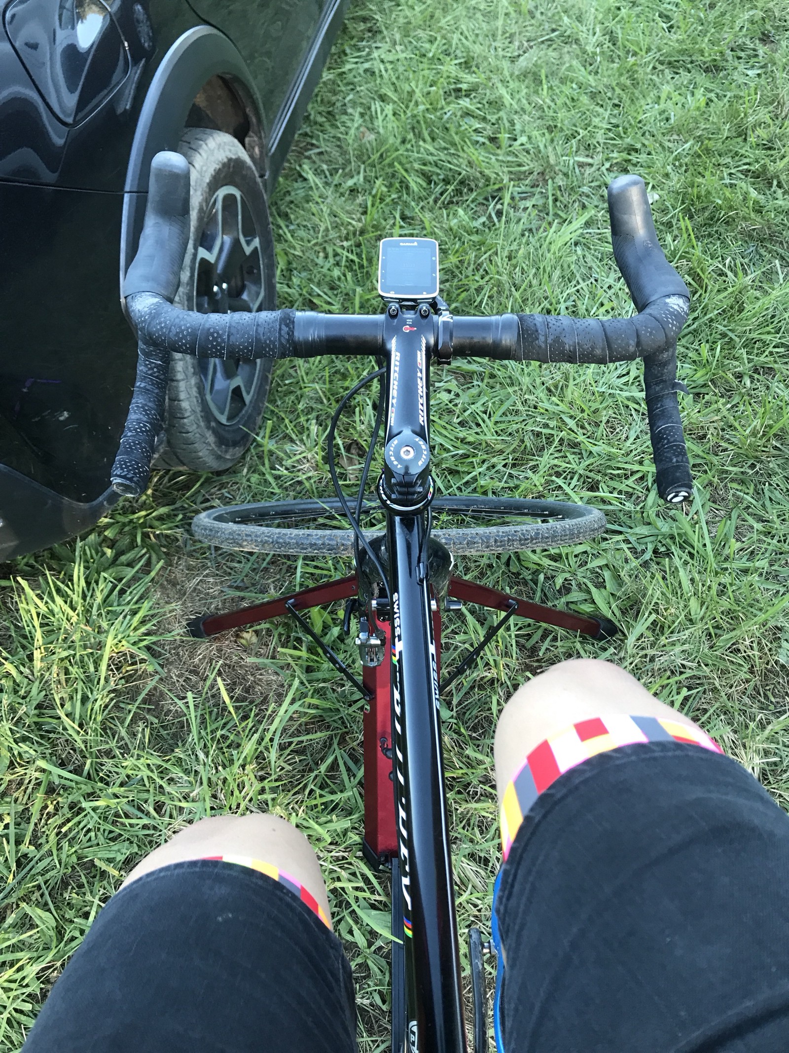 After a full 9 hours sleep I got up, had the oatmeal and banana breakfast I purchased the night before, got to the venue 1.5 hours ahead of staging, pre-rode before doing anything else, grabbed my number, “took care of business”, and was on the trainer with 15 minutes to warm up. I even had some earphones in (that we found at the darts bar 🤣) listening to British punk.