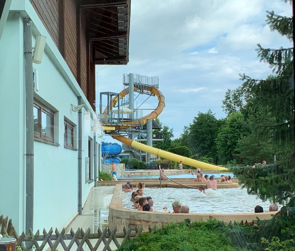 It turns out Slovenians are pretty serious about their water parks, and did I pick an awesome place to wait for my tent. The next day I checked out, and jumped the turn-style to hang out in the pool until the DHL delivery man showed up. That yellow slide... good lord.