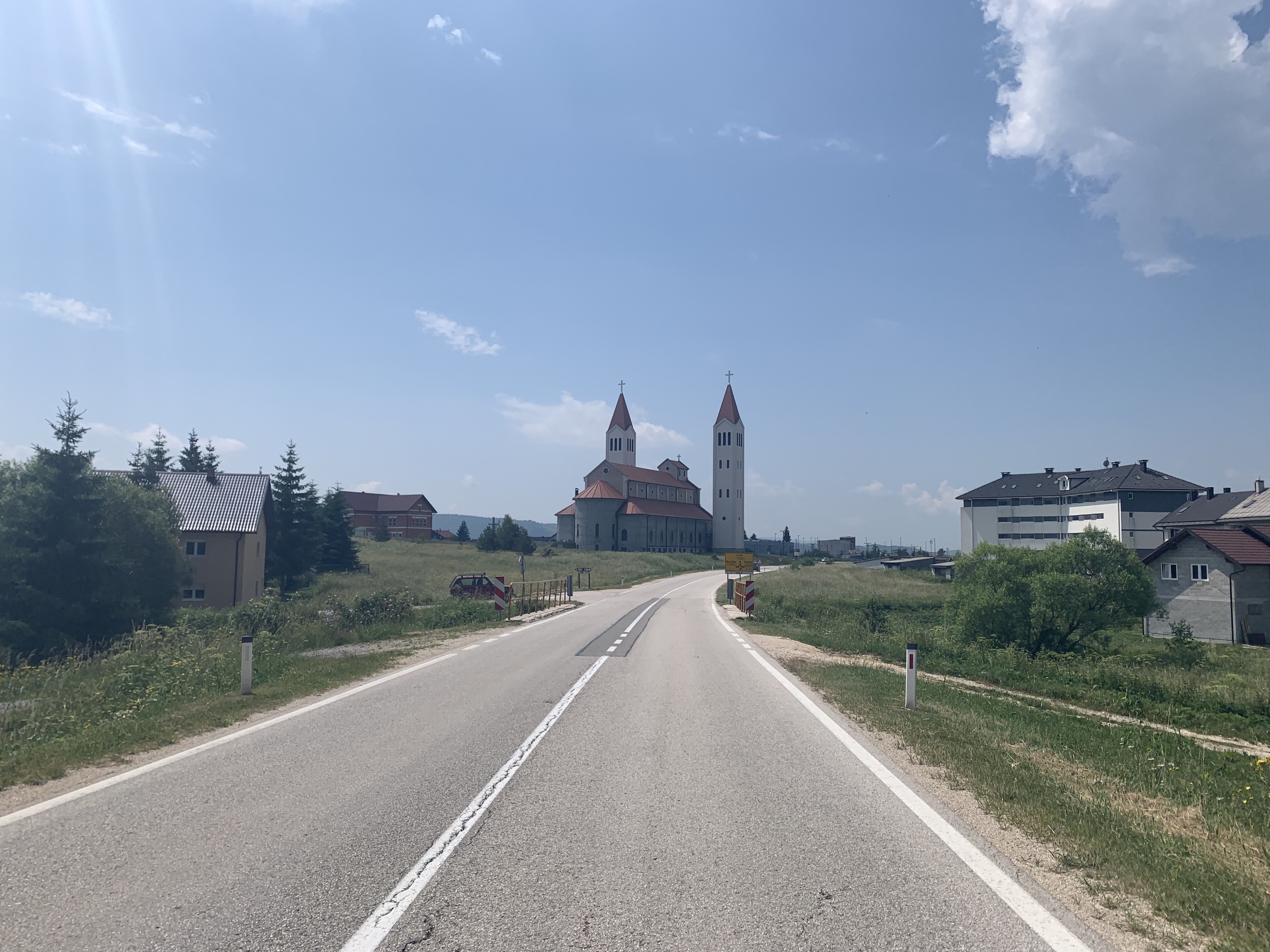 Coming through the Koprivnica tunnel spat me out in Kupres, and damn have I ever seen anything so pretty. The whole valley was visible, with golden morning light spread through the fields, with a giant church in the middle giving the whole place a real Legend of Zelda feel.