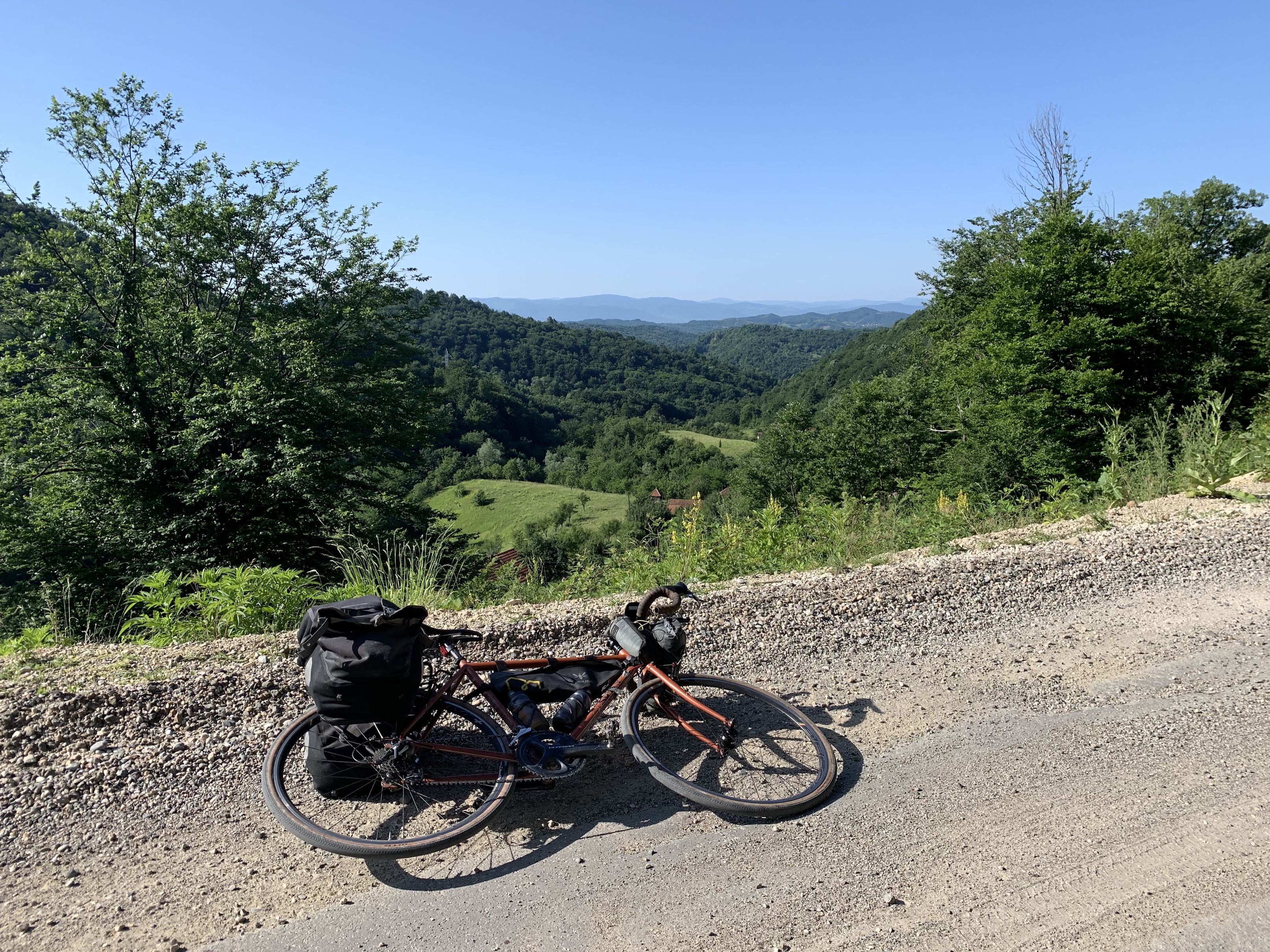 Back to it the next day, heading south to Zenica. This was another day of extreme ends of the spectrum with the roads: scree lanes and highways. The trucks were being pretty chill, they'd honk a few hundred meters back to let me know they were coming, and everyone was giving me space. Some people were even waving (their whole hand!) at me, which riding in USA is not something I'm used to.