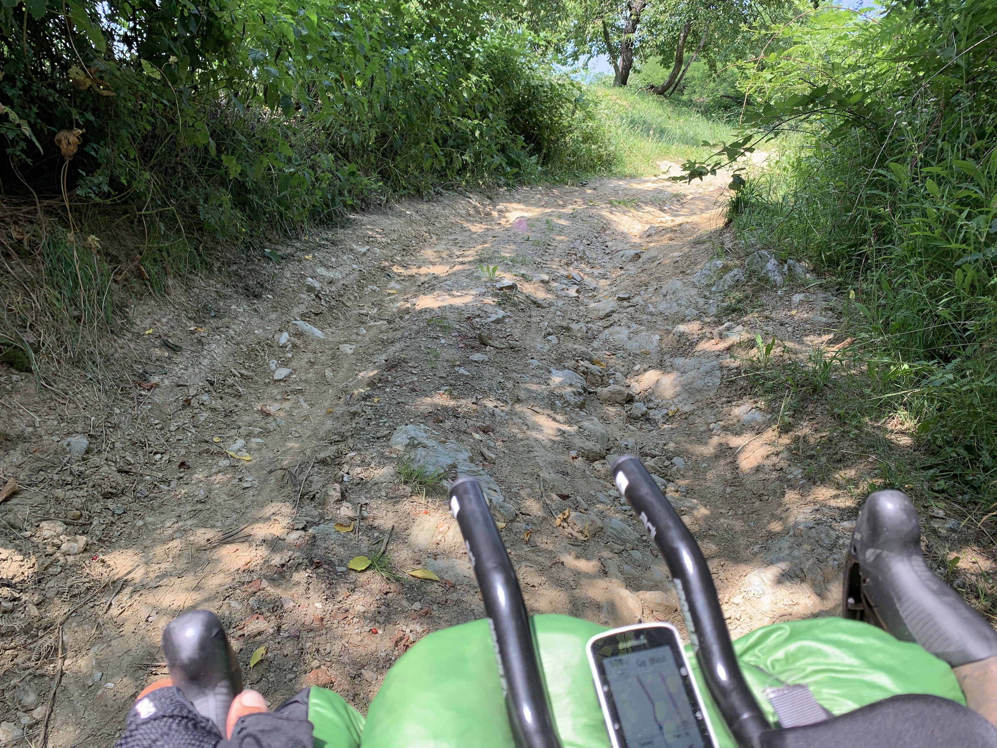 It would normally be a lot of fun, but I was running low on brake-pads and already on my spares (forgot to grab Shimano pads in Novi Sad). I had the choice of ride gentle to keep the bike mostly intact but maybe screw up the braking surface, or just fucking go for it and maybe smash the rims anyway...