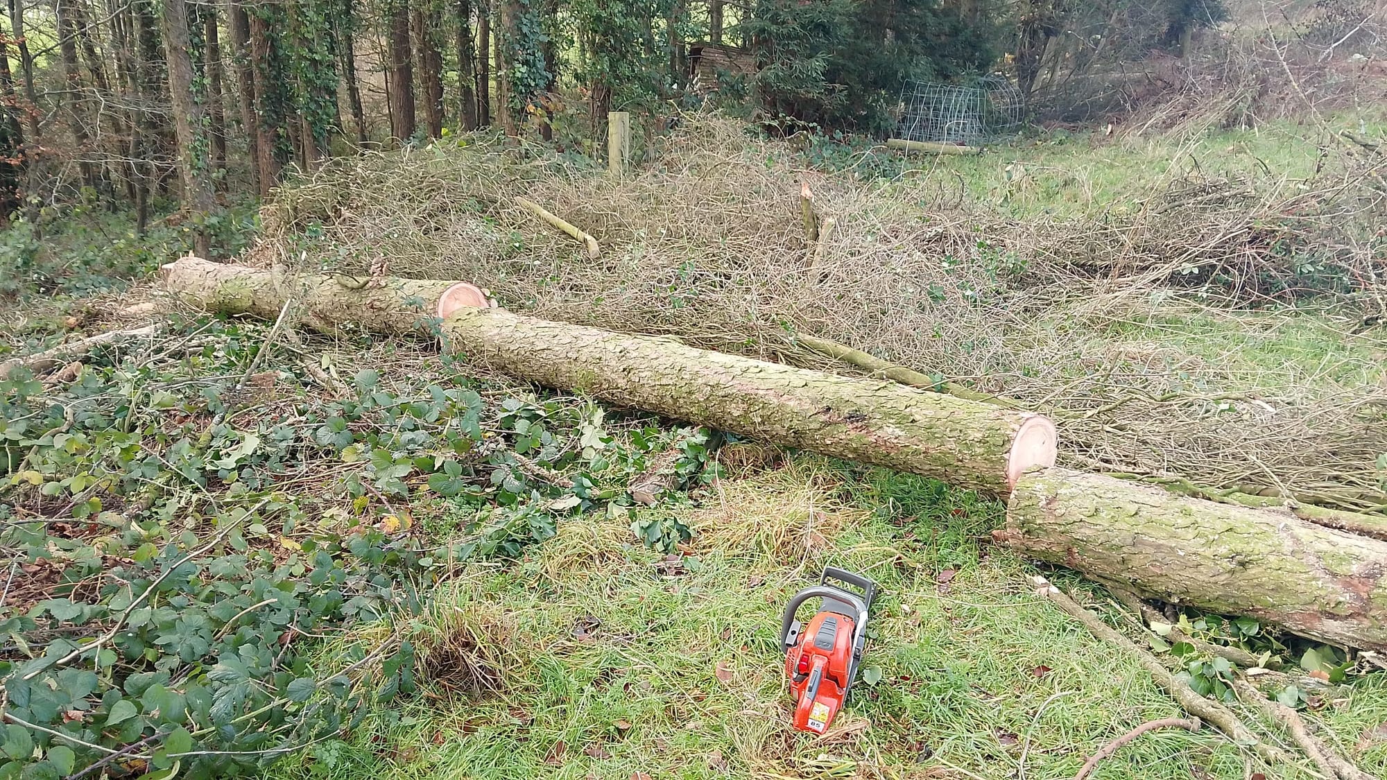 We snedded it all up and left the cuts long, giving this community interest group plenty of timber to plank up, and of course Protect Earth will be helping them mill that into planks with a mobile saw mill.