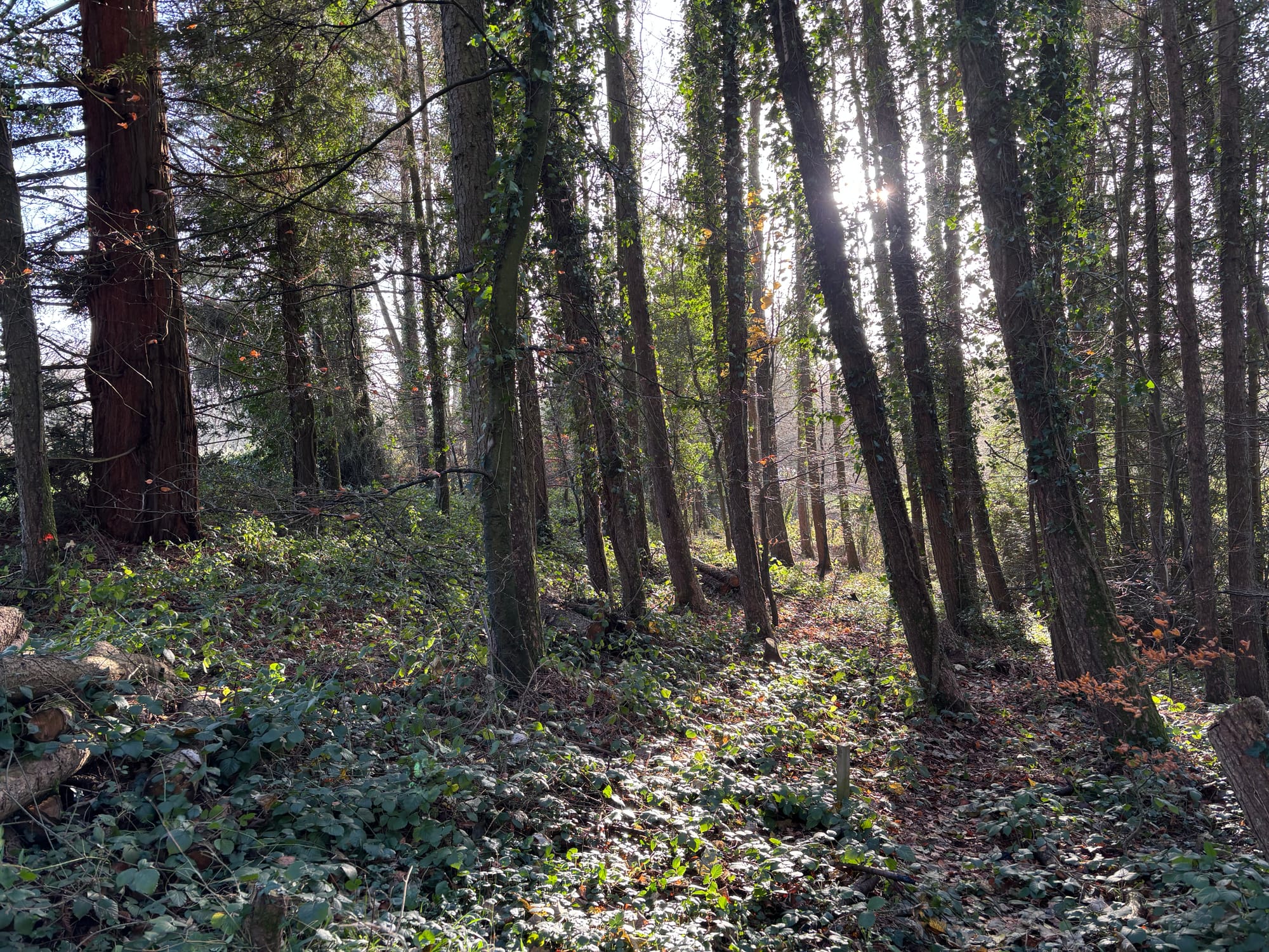A fair question, but that ancient woodland is all bollocks. It's various types of non-native conifers and nothing much else. That makes it a "Plantation on an Ancient Woodland" which is still considered an ancient woodland by the Woodland Trust, Wildlife Trust, etc., but most of its indicator species are gone. Above ground there's not enough native species to seed the field before the heat-death of the universe. The soil however is important, hiding decades - even centuries - of seeds and fungal networks, all being shaded so much they will never germinate without intervention.