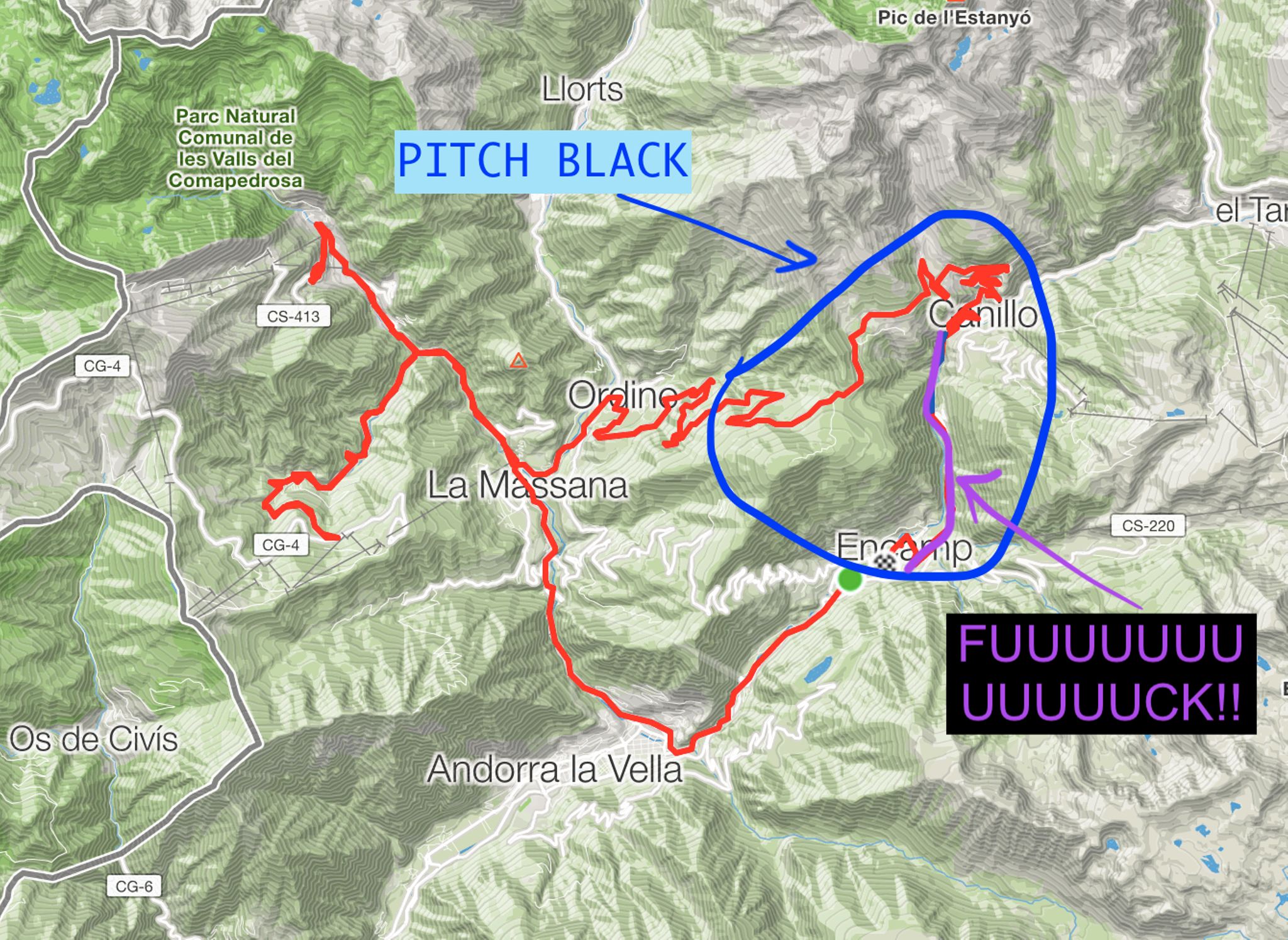 Going back down to the base of the climb at Ordino but then I was on the wrong side of the mountain, with an hour ride home, no lights on a busy road. Not great. So I decided to keep climbing, and descend into Canillo. Seeing as that was pretty close to Encamp it seemed like I could roll down a sidewalk, or river path, or hitchhike, or something.