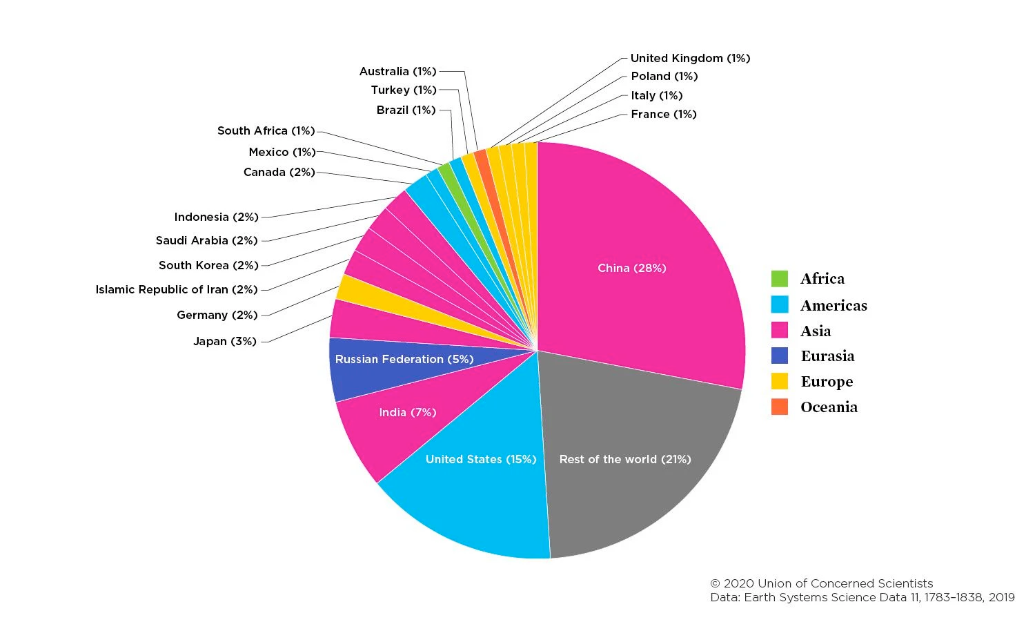 One of many reasons China has such a high carbon footprint is that many countries shrank their carbon footprint by outsourcing all the manufacturing to China, then ignore the emissions involved with shipping those produced goods to their country. China was also being used as the world’s recycling center for decades, ignoring all the shipping involved with sending the worlds rubbish to their shores. This argument also ignores the fact that China has a population of 1.4 billion people, substantially more than most countries.