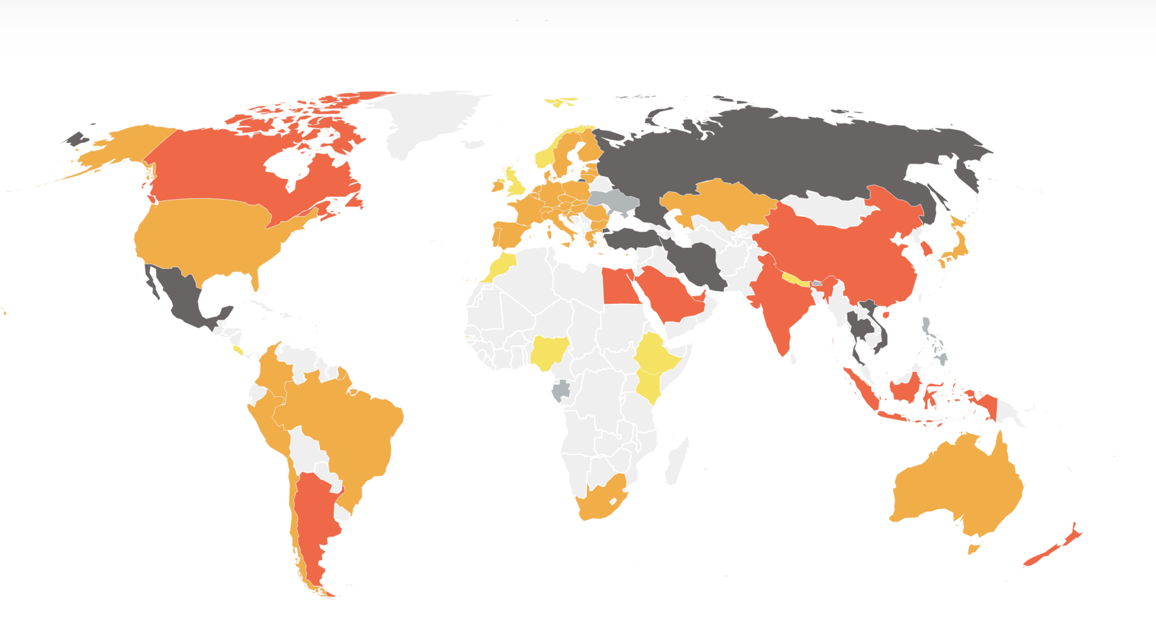 Nope. Climate Action Tracker monitors the policies and actions of countries, and gives them a status based on their progress towards meeting their commitments to the Paris Agreement. Any country on the map below that's highlighted green is doing just fine, keeping us on track for a 1.5ºC world (so long as the other countries also catch up).