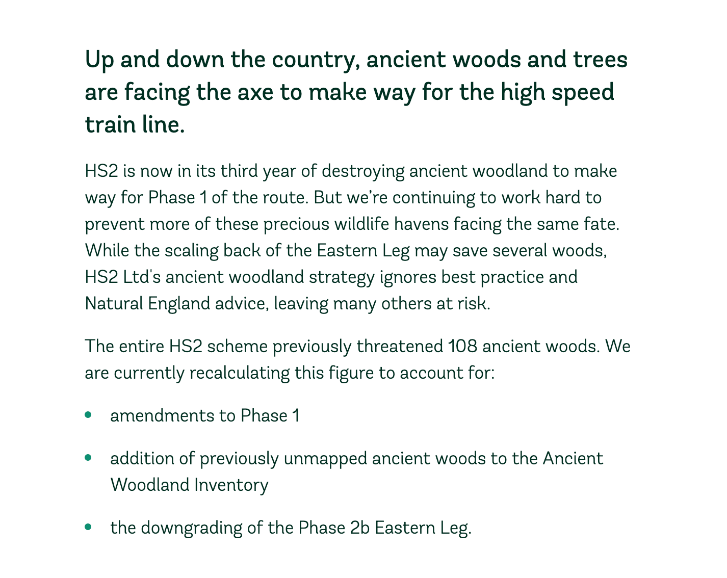 Where is this confusion coming from. Was HS2 going to "impact", "threaten", or "destroy" 108 ancient woodlands?