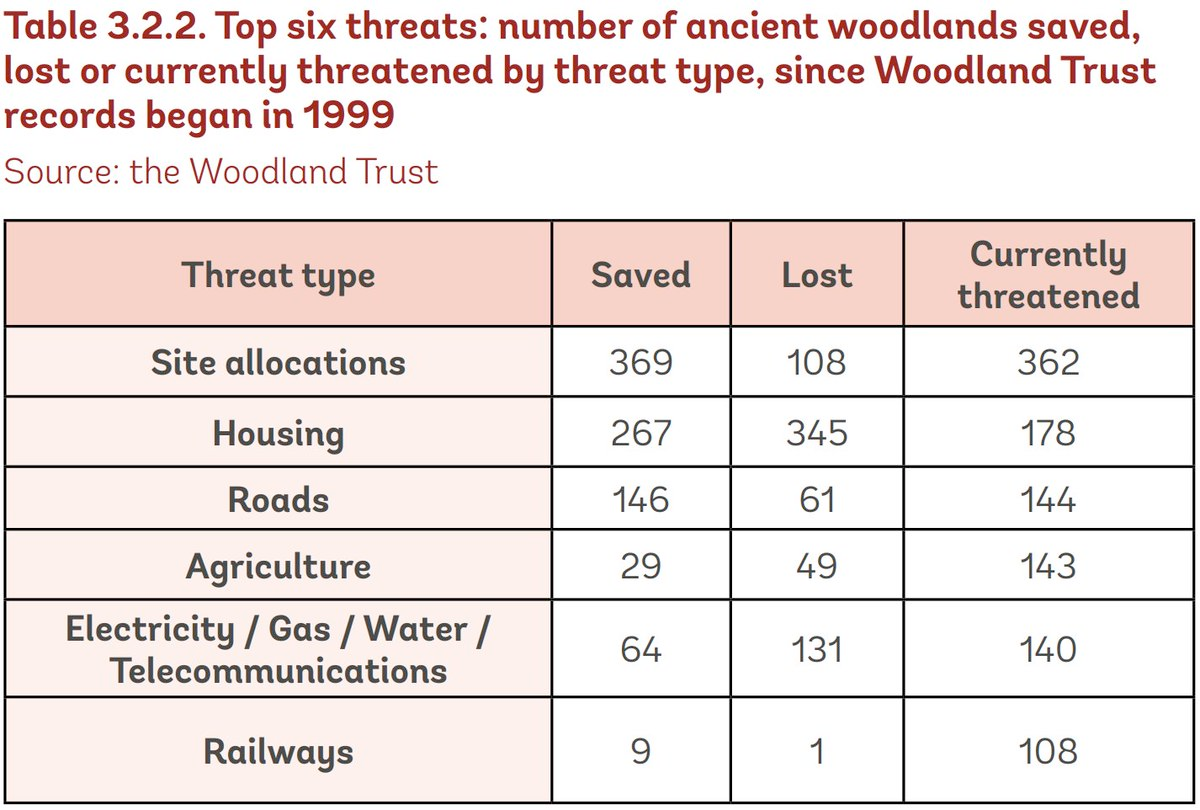 The Woodland Trust compile a list of threats to ancient woodlands, and housing and roads are some of the biggest threats.