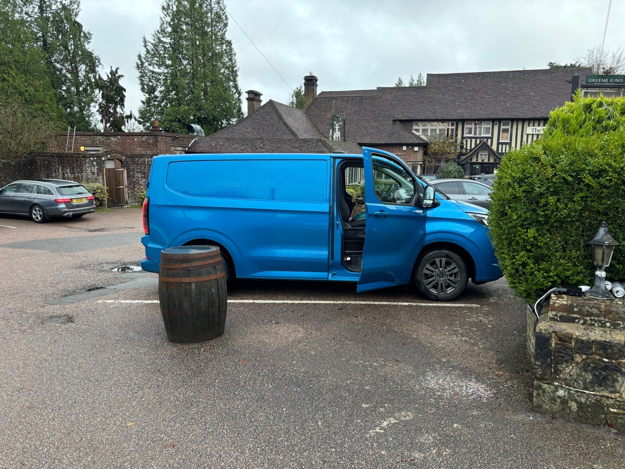 I had a four hour drive, with the 205 mile range of my new van once again coming to the rescue. The windscreen was covered in about as much water as my eyes but between the bouts of crying was equal lengths of steely determination. The wheelbarrow was only out of the van twice. It was in a concrete carpark. I seem to remember seeing a barrel. WAIT that's the Roebuck Inn in Forest Row. I was there Tuesday night. I parked next to that barrel emptying/sorting out the van. I heard it clink off and thought "I'll grab that in a second" before being distracted by 1,000 other things.