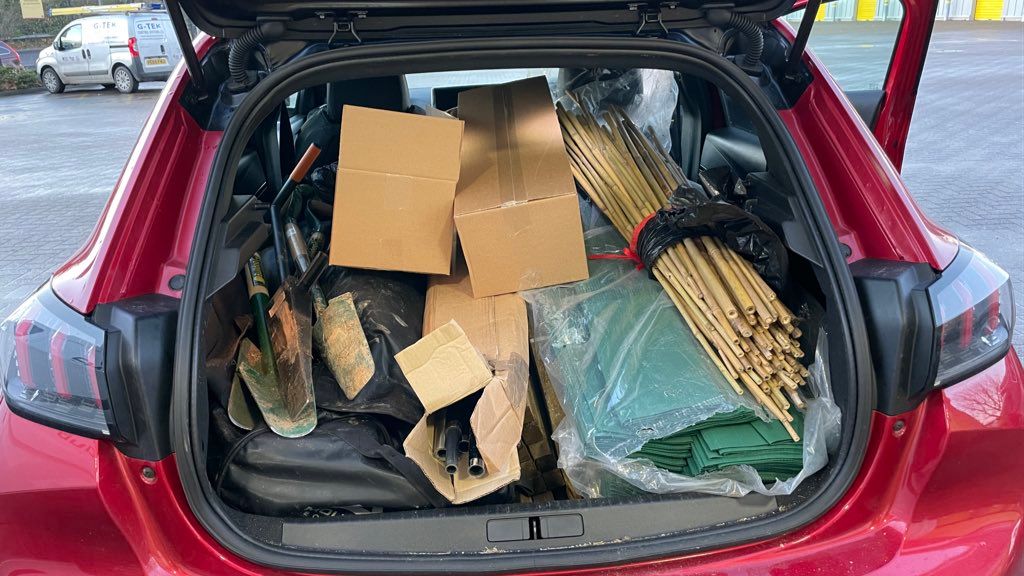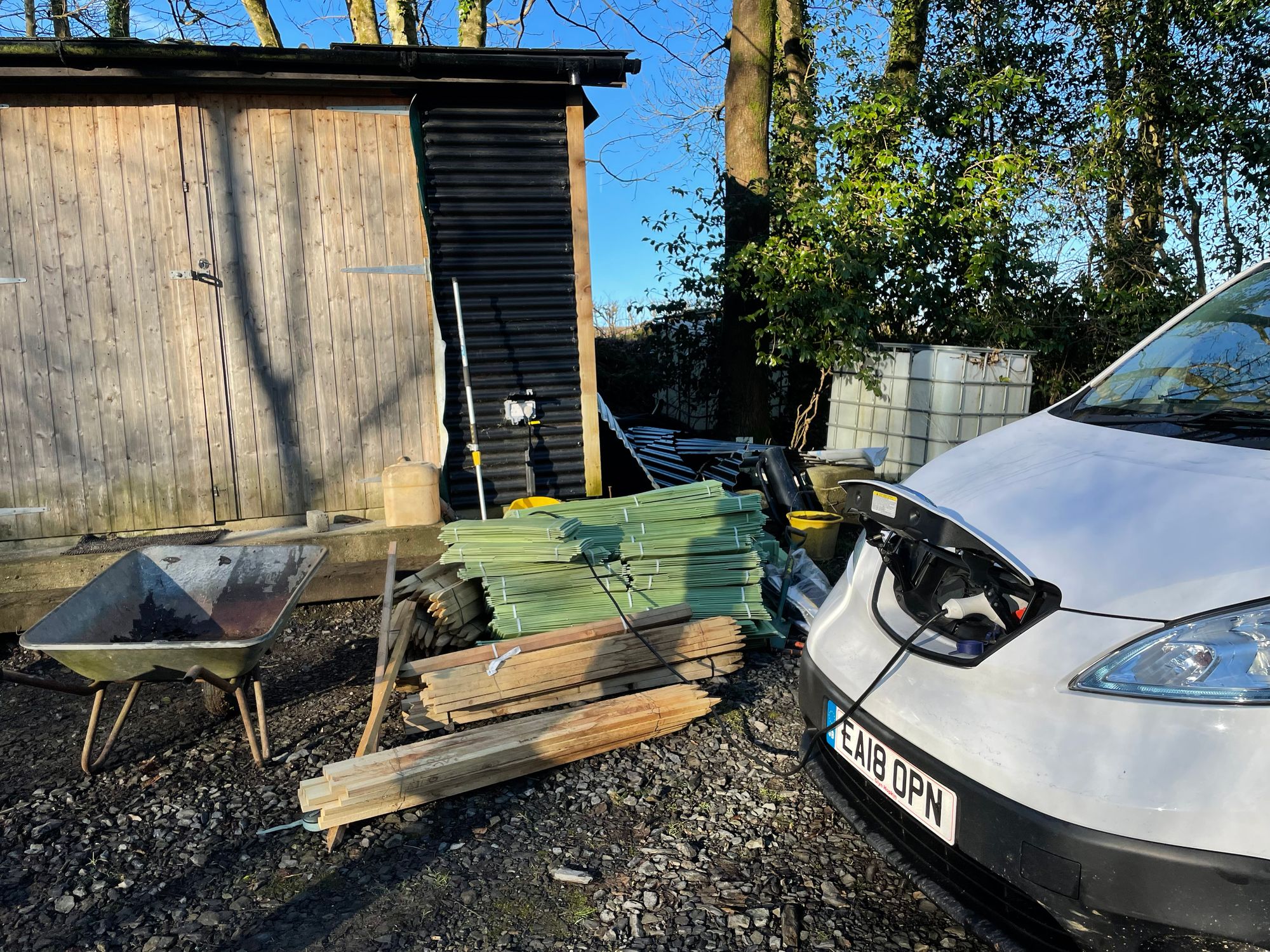 Moving loads of stakes and tree guards however was a bit more of a faff. We had huge surplus of kit in our storage unit, and various farms out in rural Wales struggling to accept deliveries, so I was mushing kit around all over the place. More than a few times I would struggle around Powys and Ceredigion (Wales), limping between chargers that may or may not be working, then turn up at some random field to fly tip all the gear out before I could get in bed.