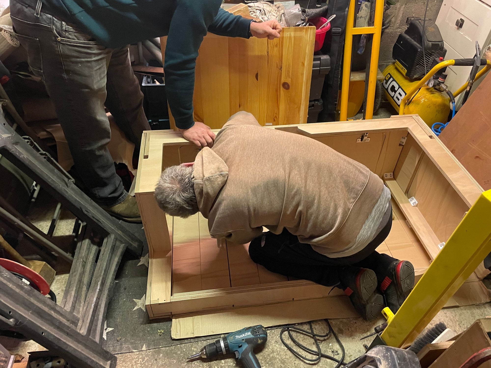 It took several hours and a lot of cups of tea but we got it done. The single bed can slide out to a double for when my partner comes to join me on the road.