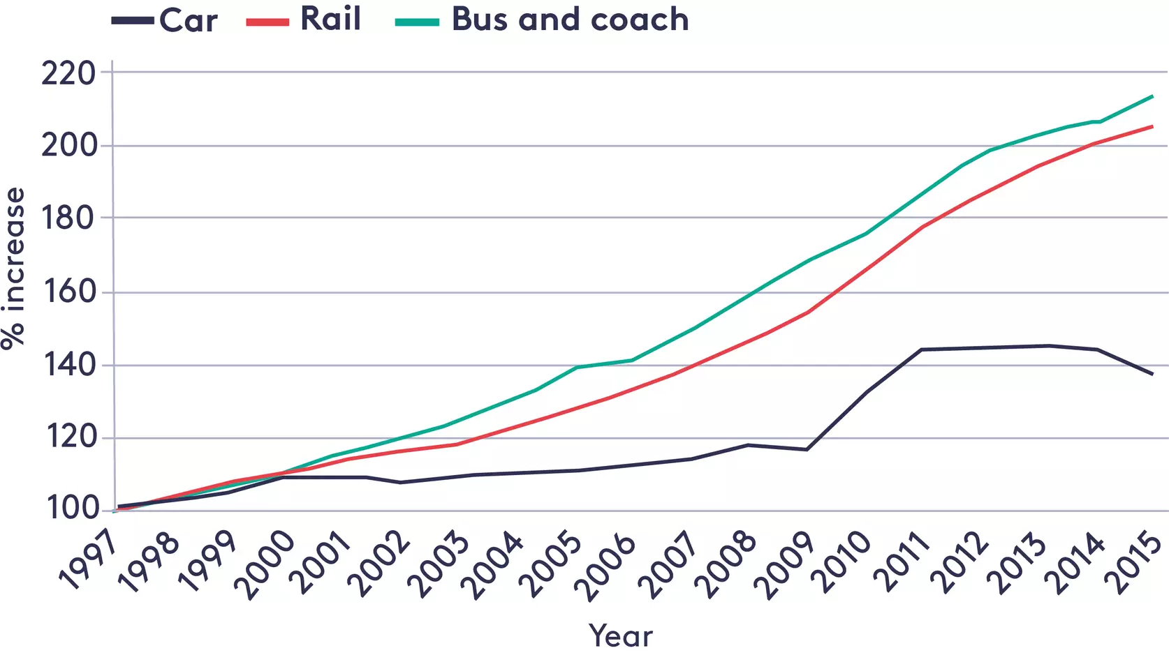 People mainly do what is cheapest and/or quickest, and decades of subsidies and tax breaks for driving, fuel duty freezes, road expansion, and turning every inch of public space into a car park, means we've seen car use massively increase.