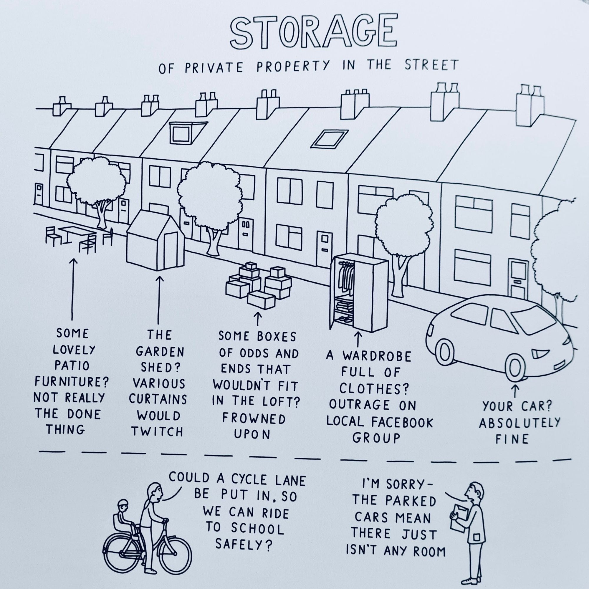 Now let's have a fact so easily agreed by the left and right that both sides are quoting it. Cars are parked on average 96% of the time, and whilst some may think cars aren't causing a problem when they're parked, they're an oppertunity cost on all the other amazing things that could be done with that space, from shade trees to bike lanes or storage.